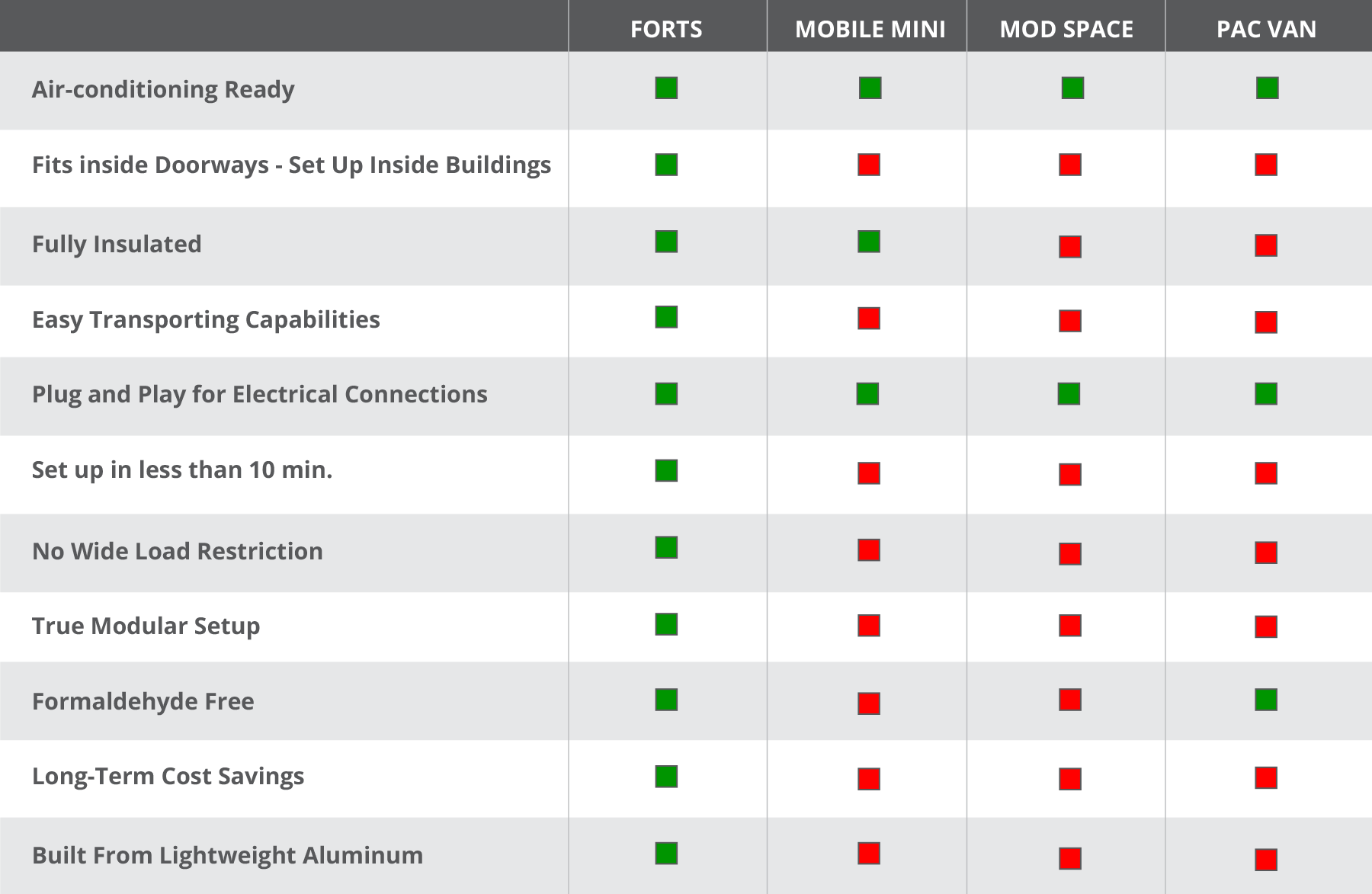 If you’re looking for a high quality, spacious and luxurious portable building for your next event, FORTS is the solution you need! The comfort suites from FORTS are unlike anything you’ve ever seen from Mobile Mini, Mod Space, Pac Van and other industry service providers.