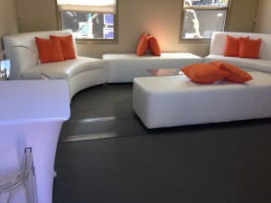 From chaise lounges & sofas in team colors to snack tables draped in whatever amenities exclusive visitors requested, our unit successfully simulated the exclusive feel of a VIP lounge in an upscale club or bar. Visitors lacked no creature comforts.