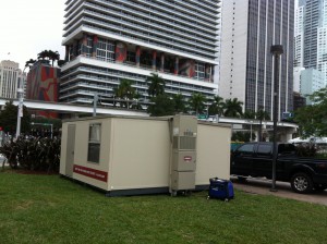 In the middle of this hectic outdoor event, audiovisual crew members, media personnel, and spokespersons alike enjoyed the comfort of a temperature controlled, fully furnished office. Reporters and workers came and went without a single bead of sweat. And of course, the athletes themselves appreciated having an agreeable place to interview prior to and after the race.